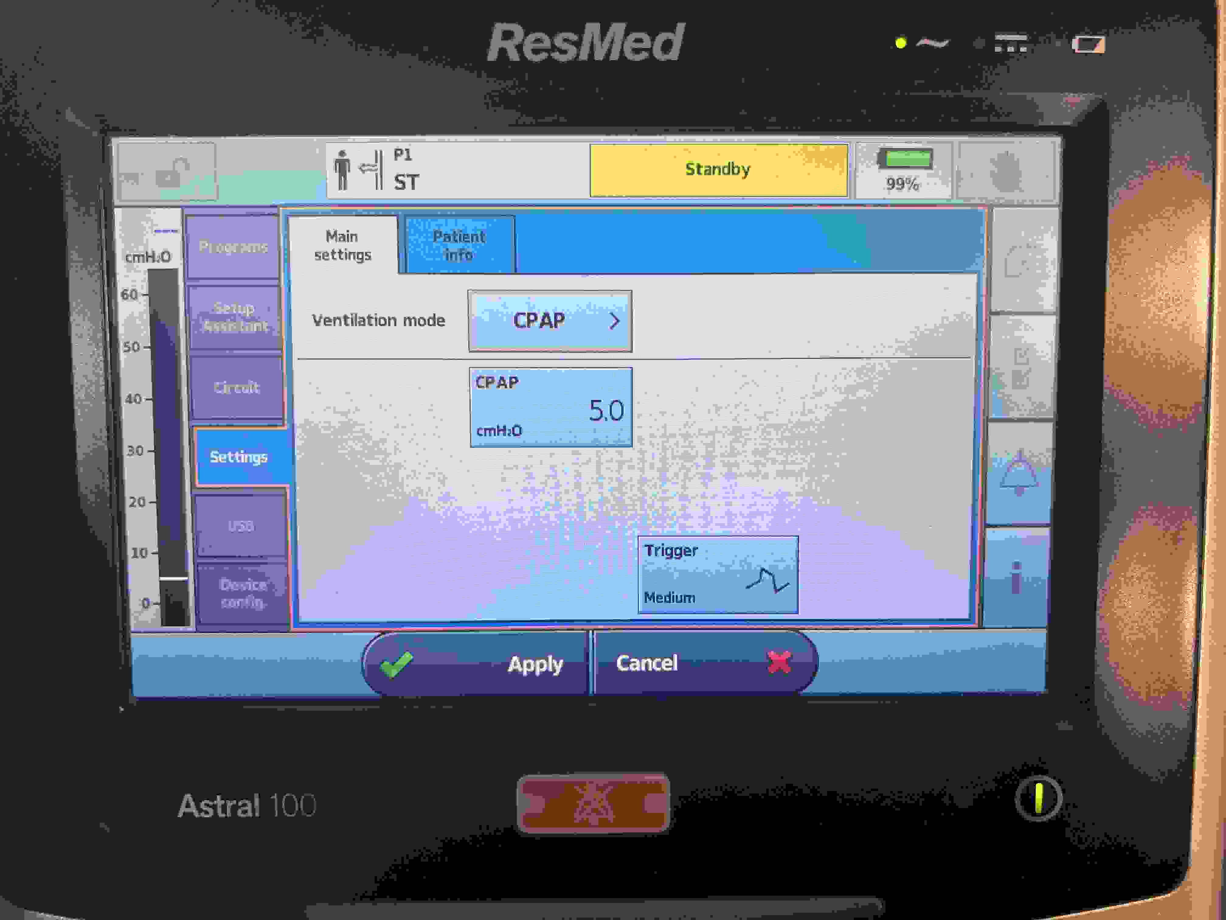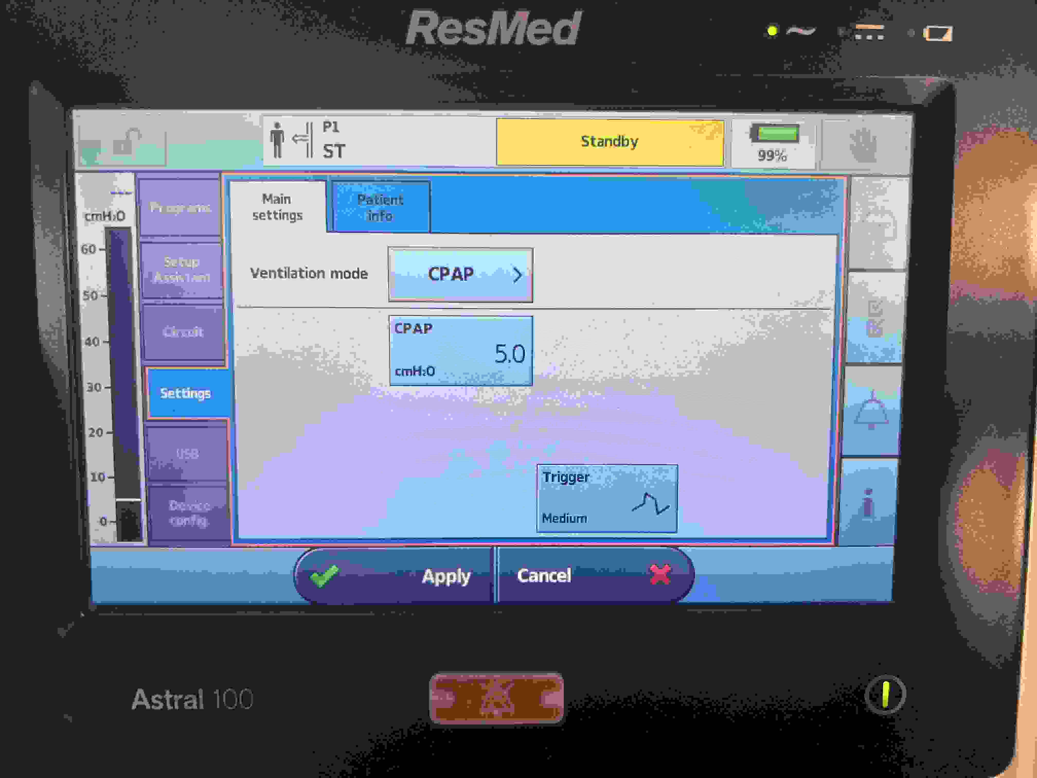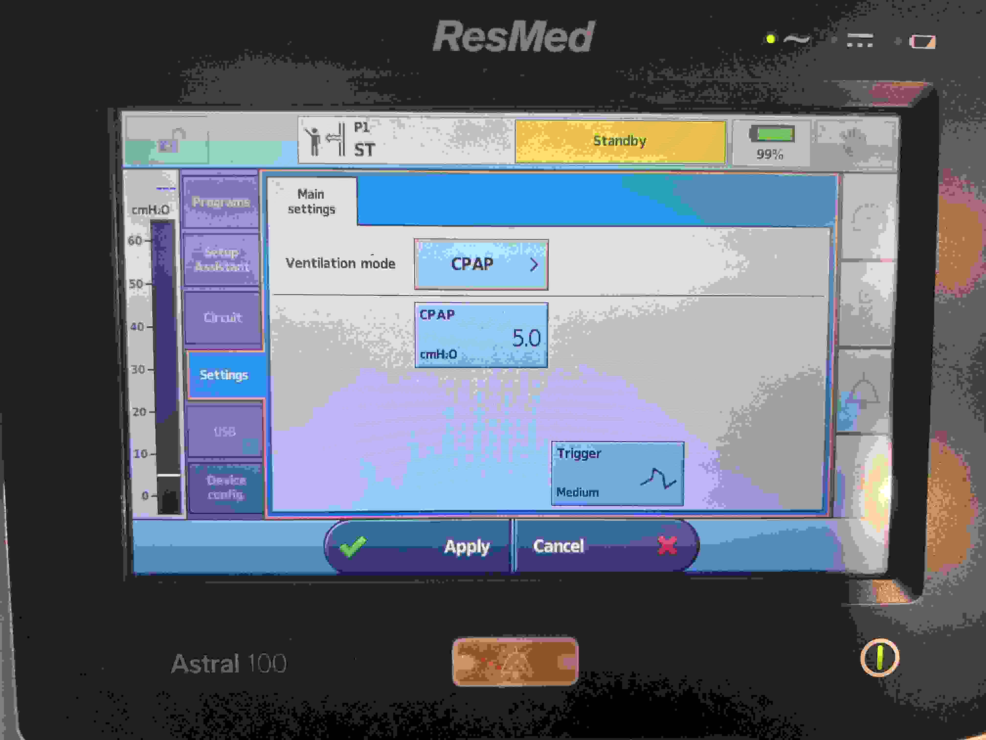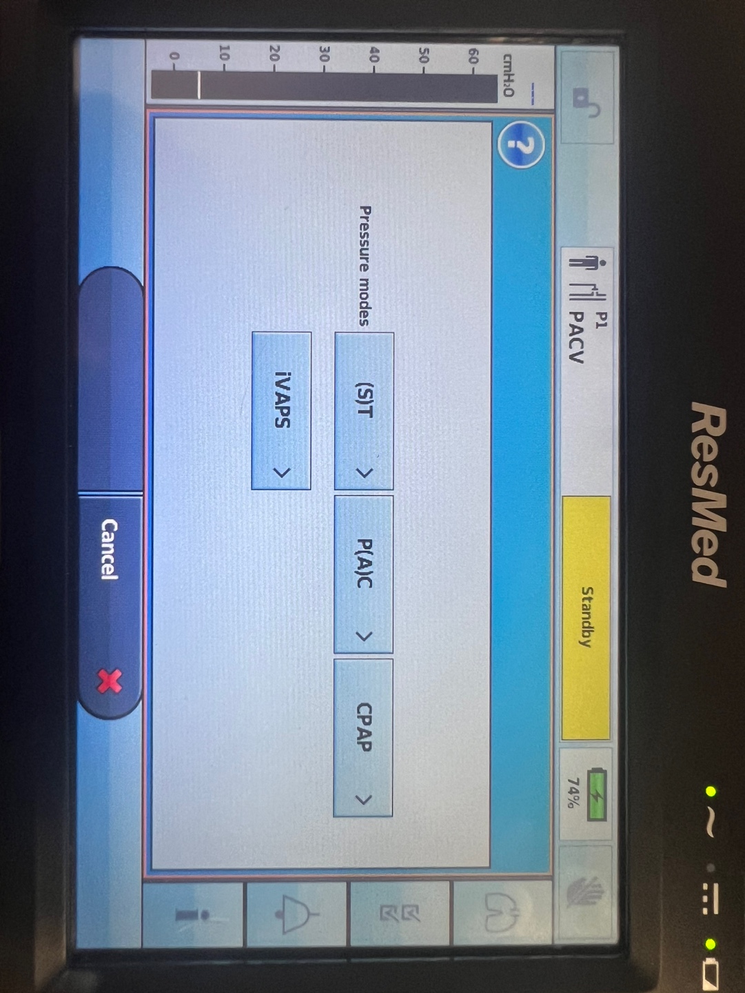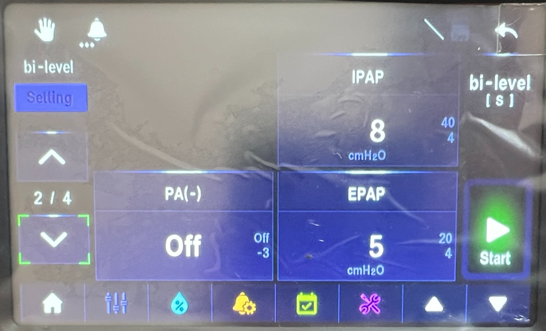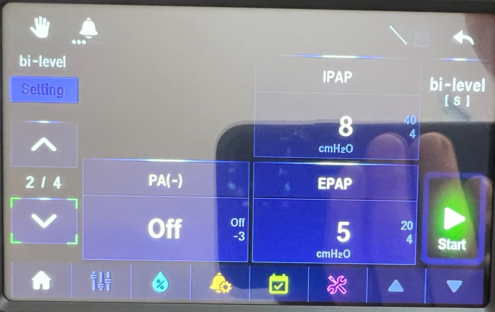 Therapy Pressure (Fixed Pressure Setting): This setting appears when the device is in CPAP mode (or CPAP-Check mode) instead of Auto. It is the exact pressure delivered throughout the night in CPAP mode, or the baseline starting pressure for CPAP-Check mode. It can be adjusted from 4 up to 20 cm H 2 O, but in practice it should be set to the patient’s prescribed pressure (or a value determined through titration). In CPAP-Check mode, this is the initial pressure around which the device will make its ±1 cm adjustments over time if needed. If the device model has an “Auto-Trial” feature (used typically in some CPAP models to perform a temporary auto-titration for a few nights), once that trial is completed the machine might suggest a 90th-percentile pressure; the clinician can then set that value as the fixed pressure. Otherwise, the fixed pressure is set based on sleep study titration or clinical judgment. It’s important that this pressure is optimal: high enough to prevent apneas but not higher than necessary to minimize side effects.