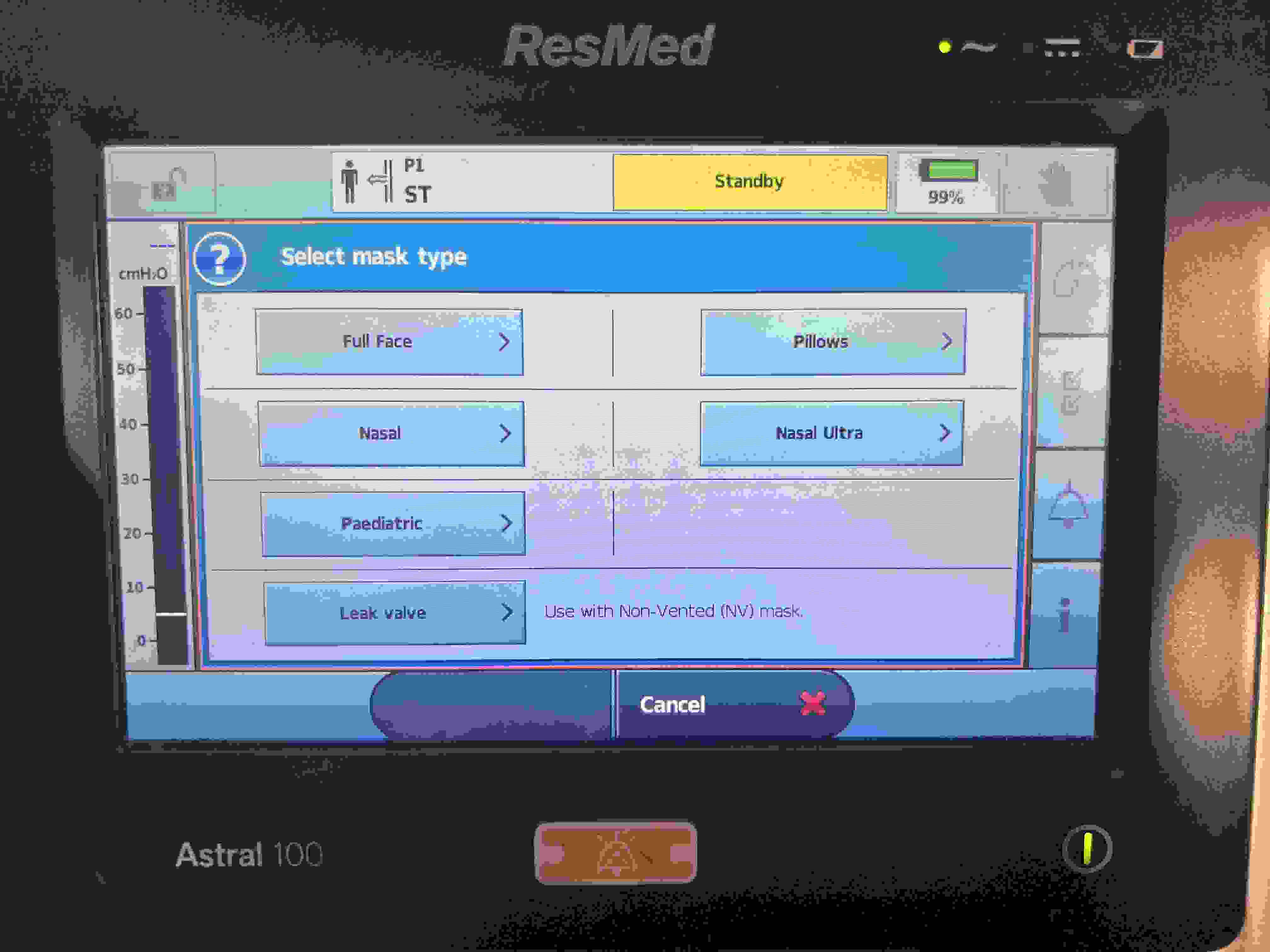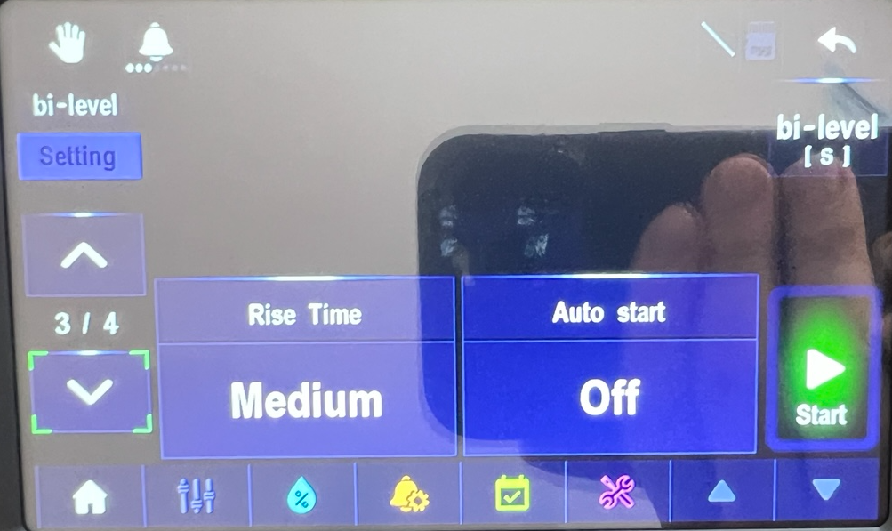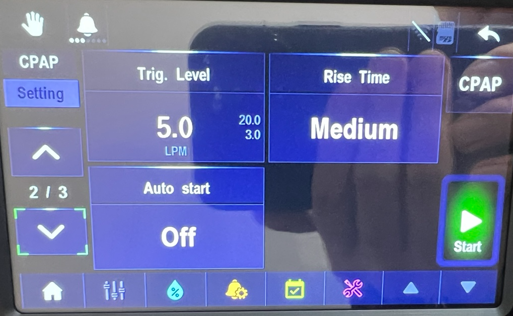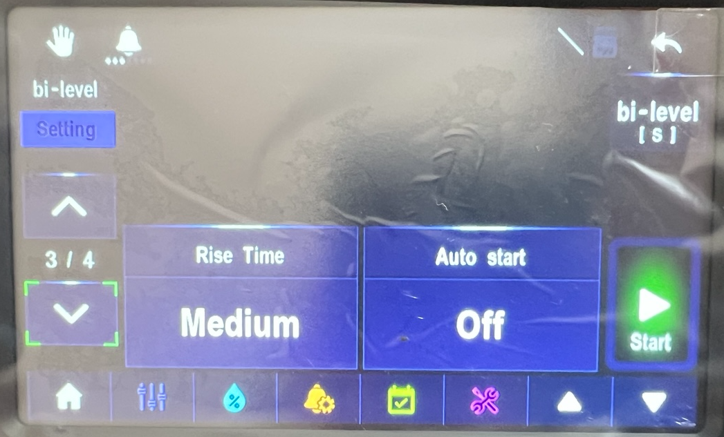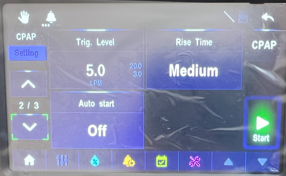 | Auto Start/Stop | Auto-on (automatic therapy start upon detection of breathing into the mask) and Auto-off (automatic stop when the mask is removed) features for convenience. These can be enabled or disabled by the provider in Clinician Settings. |
