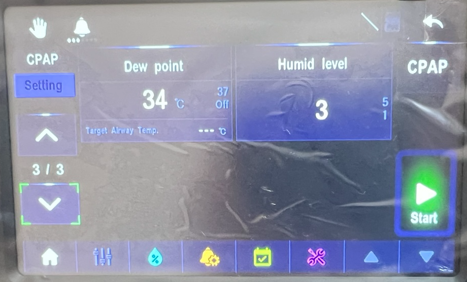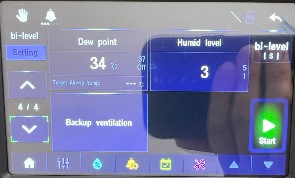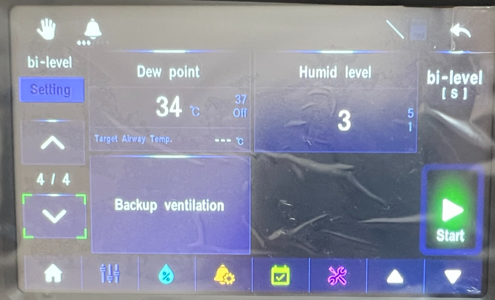 Opti-Start: This feature (available when the machine is in Auto CPAP mode) adjusts the starting pressure at the beginning of each therapy session. When Opti-Start is enabled, the device will begin the night at a pressure closer to the patient’s recent therapeutic needs rather than at the minimum. Specifically, it uses the previous session’s 90th percentile pressure as the next starting pressure. For example, if during the last night the auto-adjusting pressure went up to around 10 cm H 2 O for 10% of the time, Opti-Start will start near 10 cm on the following night (instead of, say, 5 cm). The goal is to prevent early-night apneas that might occur if starting too low. Opti-Start can be either On or Off ; if disabled, the device will simply start at the set minimum pressure (or at the ramp pressure if ramp is used). Providers might enable Opti-Start to improve initial therapy effectiveness, but if a patient finds the starting pressure uncomfortably high, this feature can be turned off to let them begin at the lower pressure and climb gradually.