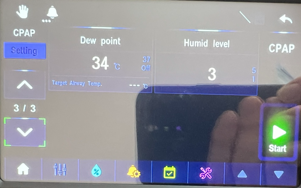 - Humidification check: Maintain chamber water level and temperature alarms; inadequate humidification increases work of breathing and secretion load.