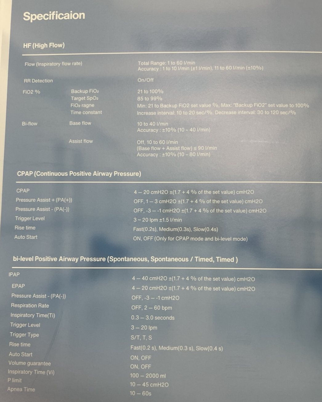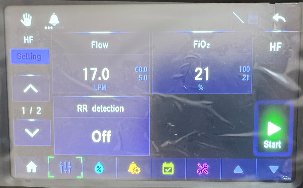 | Device | HFT 700 (high-flow oxygen therapy) |