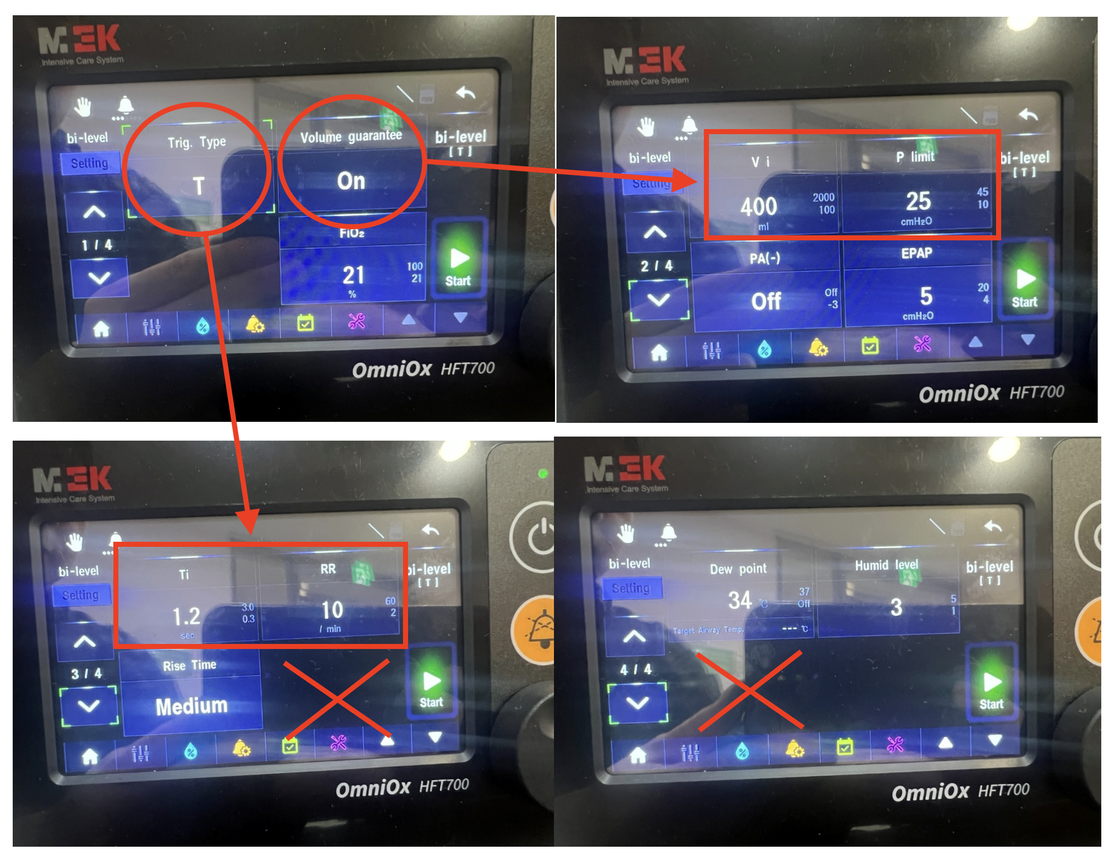 - Establish unit-level protocol for HFT700: default flow 60 L/min, FiO2 for SpO2>92 %, ROX checklist, humidification audit, and predefined NIV triggers.