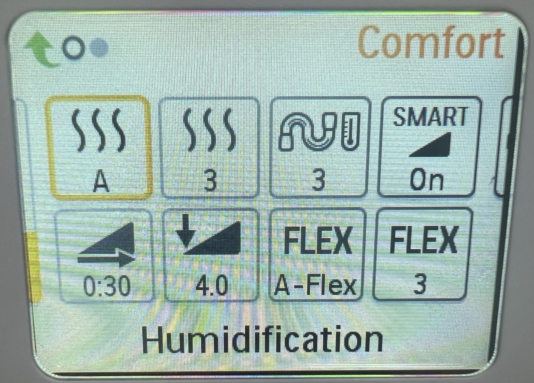 The Comfort Settings menu in the DreamStation’s provider (Clinician) mode contains features that enhance patient comfort without altering the prescribed therapeutic efficacy. These settings let the clinician adjust humidification, ramp behavior, exhalation relief (“Flex”), and other options to make therapy more tolerable. Below are the key comfort-related settings and their functions: