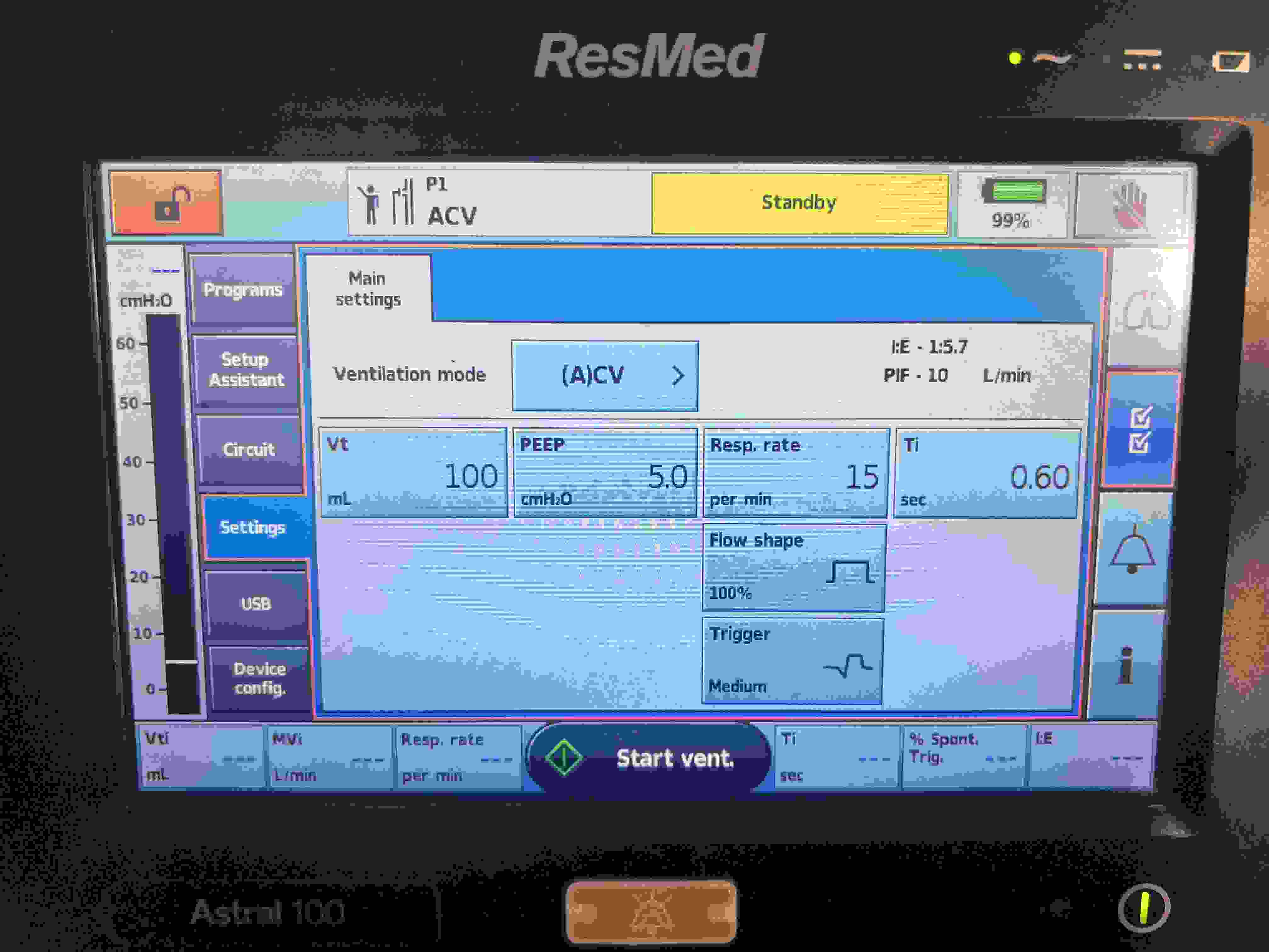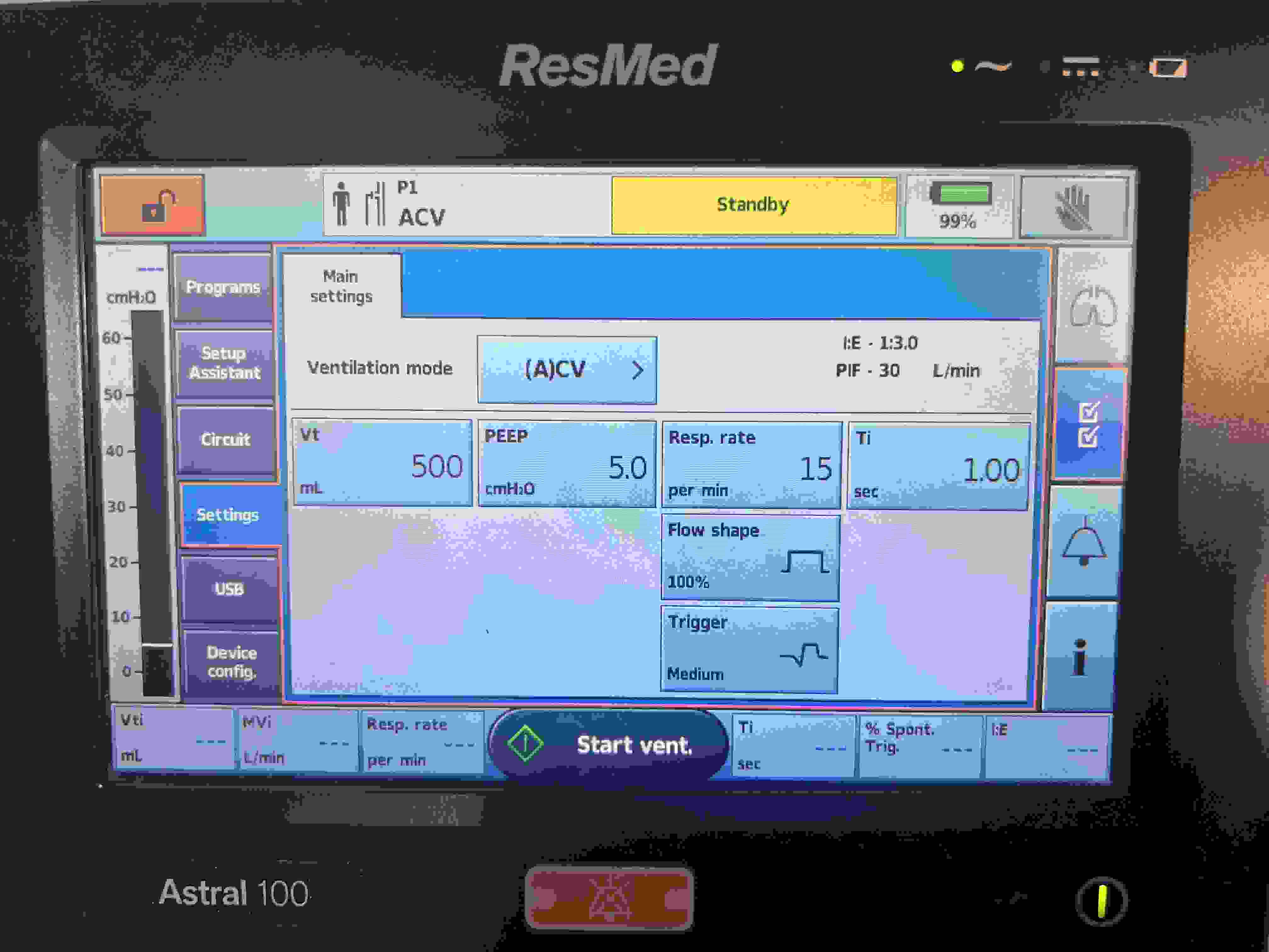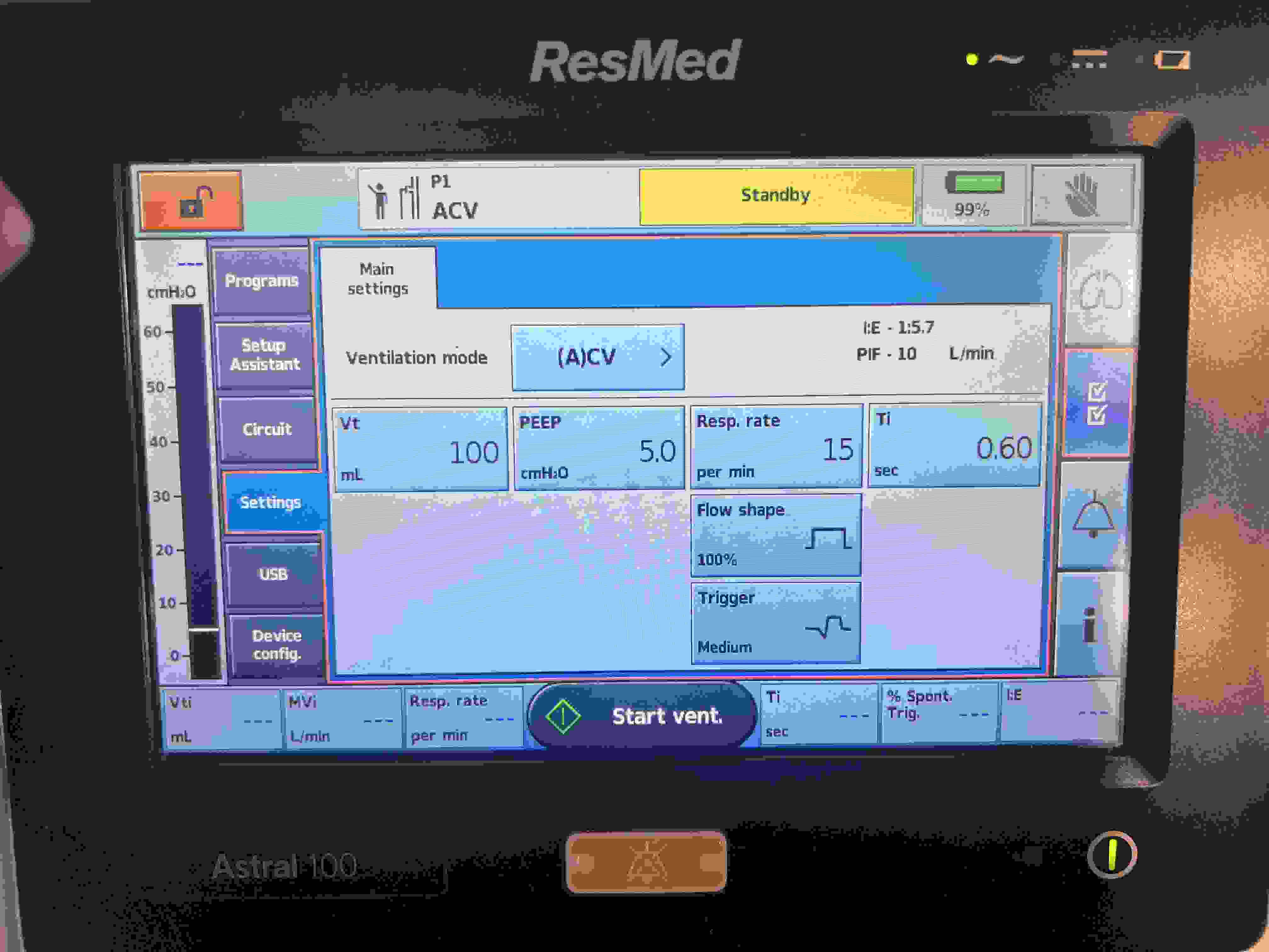 Magical VC Setting FiO2 100-PEEP 5-RR 15-TV 400: In Volume Control (VC) mode, initial settings such as FiO2 at 100%, PEEP at 5 cm H2O, a respiratory rate of 15 breaths per minute, and a tidal volume of 400 mL provide a foundational approach for the management of mechanically ventilated patients. These parameters serve as starting points and must be finely adjusted based on the patient's specific needs and responses, with ongoing monitoring to ensure optimal outcomes.