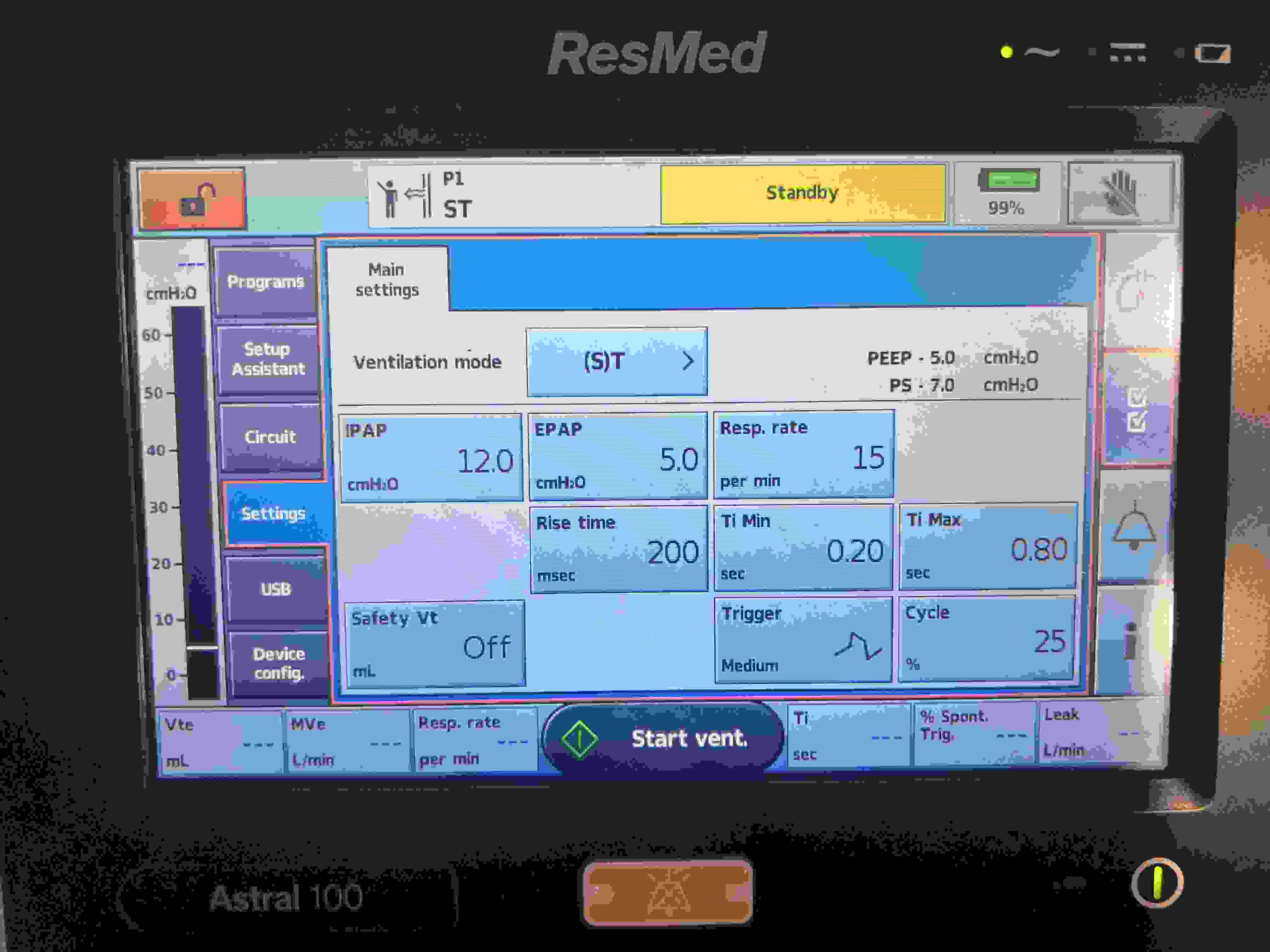 | ST (Spontaneous/Timed, NIV) | Pressure (with backup) |